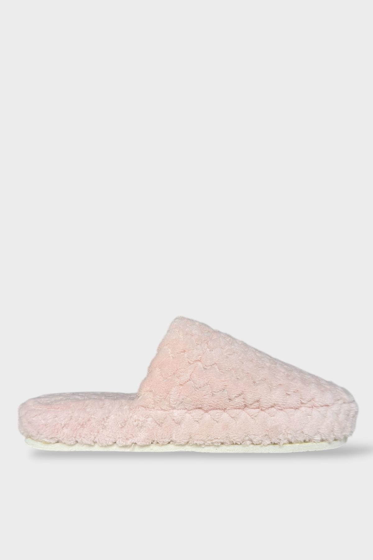 Kadın Zikzak Desen İçi Kürklü Kaymaz Taban Ev Terliği PUDRA