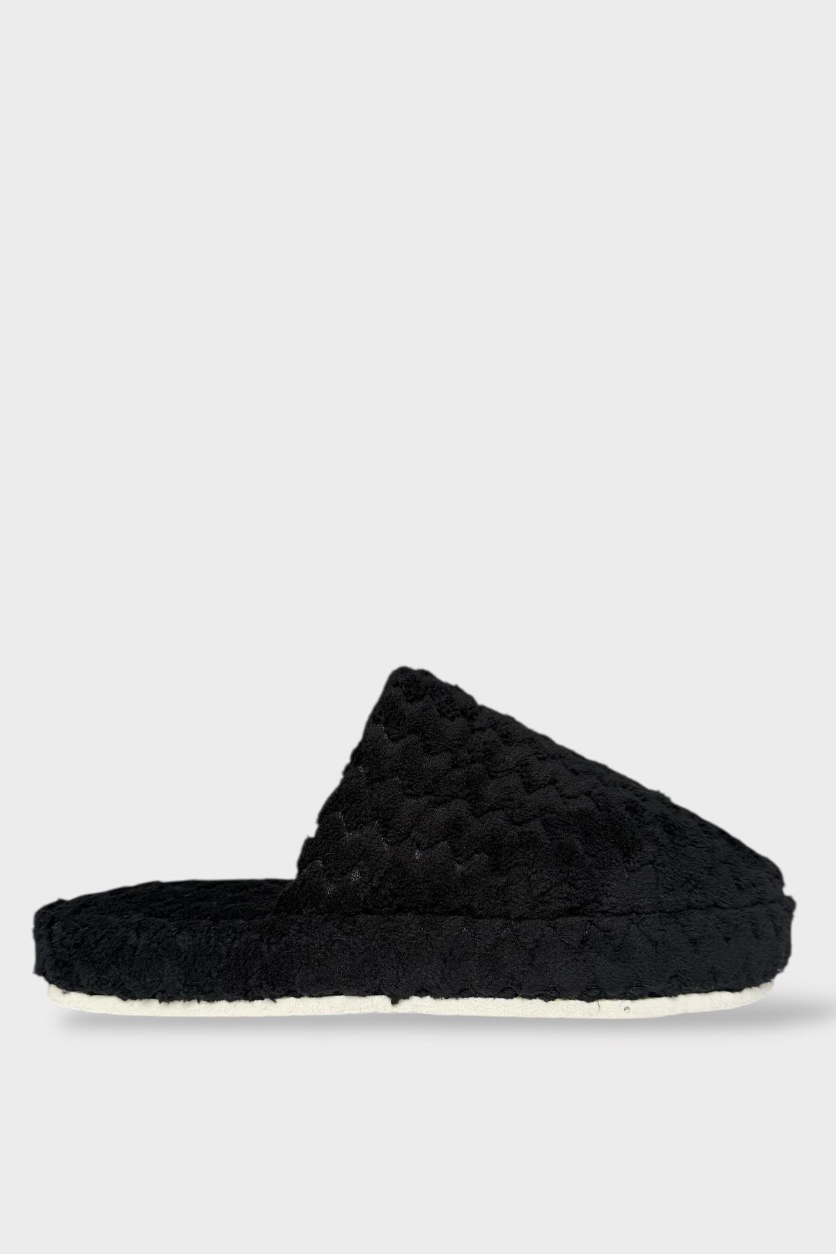 Kadın Zikzak Desen İçi Kürklü Kaymaz Taban Ev Terliği SİYAH (7625)