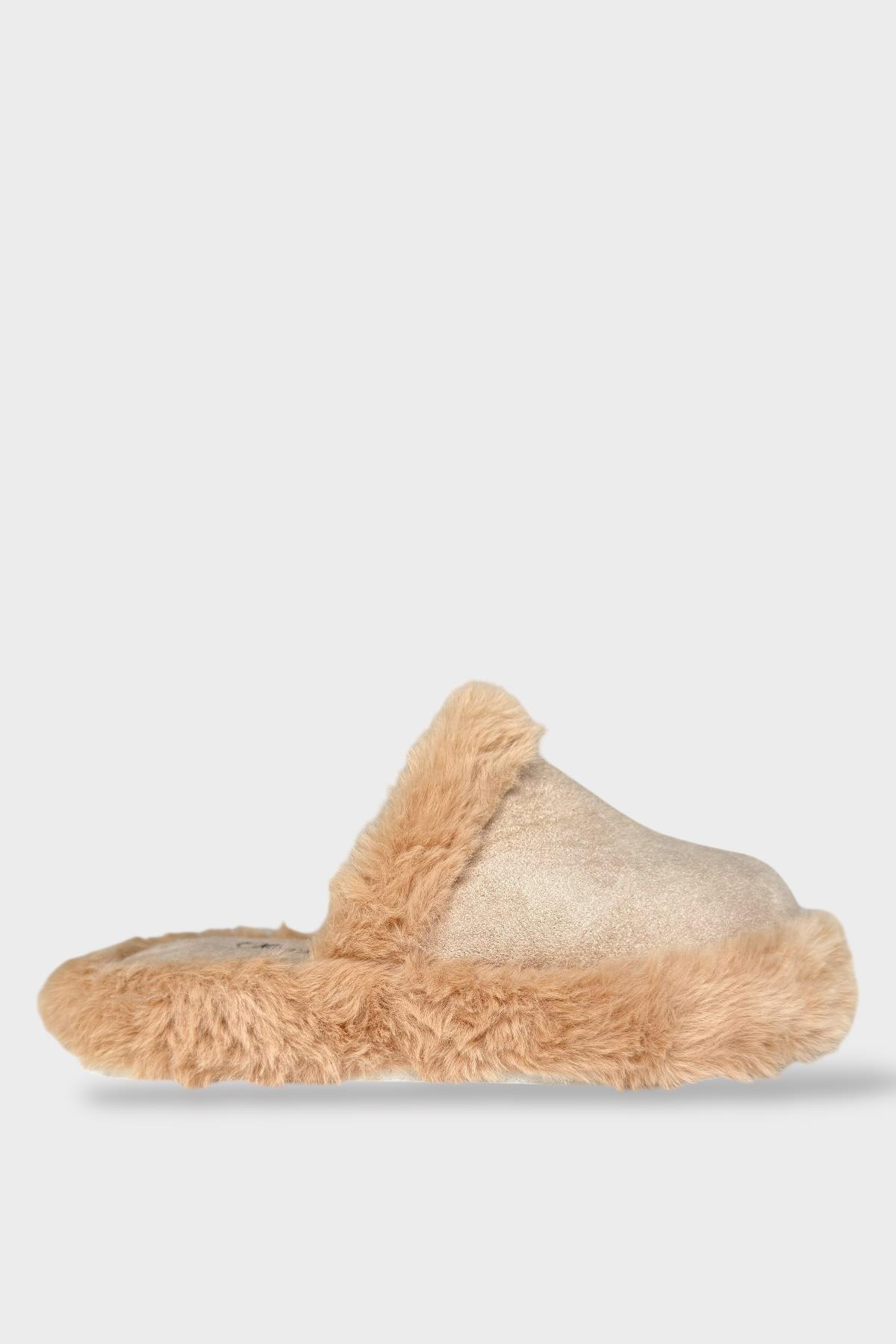 Peluş Detaylı Kadın Ev Terliği BEJ